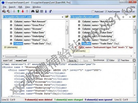 ExamXML是一個可視化的易用軟體,用來比較兩個或多個XML文檔細節。