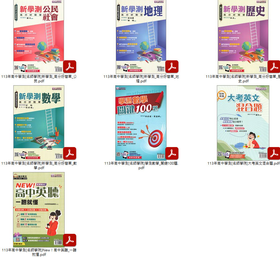 113年高中學測[名師學院]新學測 高分好簡單 + 學測數學 關鍵100題 + 大考英文混合題 + New!高中英聽 一聽就懂 講義光碟
