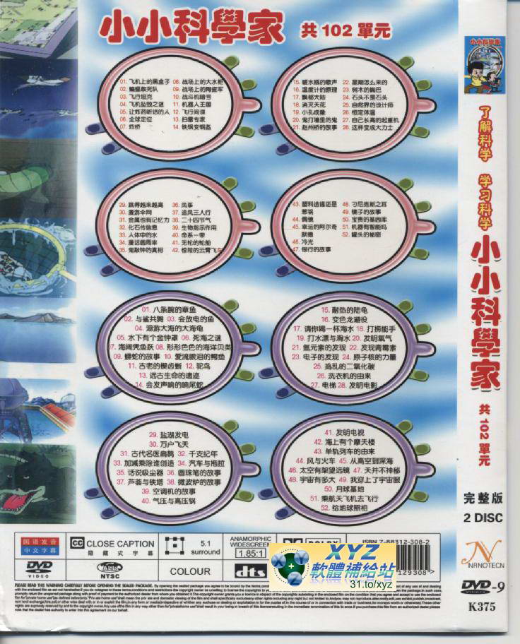 • 小小科學家 上 01-52集 國語發音 繁體中文語言字幕版(DVD版)(卡通)(適用任何家用DVD播放機)