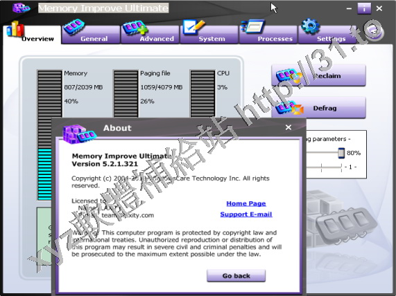 • WindowsCare Memory Improve Ultimate v5.2.1.302 英文正式版(優化和監控系統的軟體)
