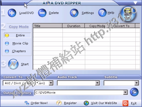 DVD格式轉化與備份軟體,可以將你最愛的DVD電影以AVI, DivX, VCD 和SVCD的格式轉制到硬碟上。